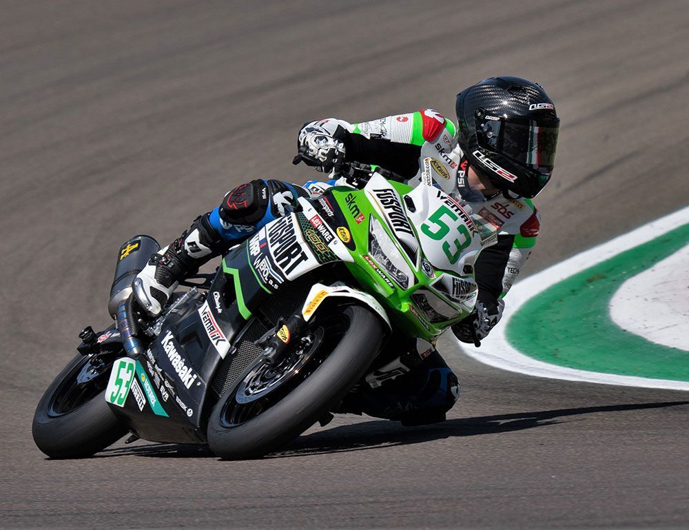 After several weeks off, FÜSPORT - RT Motorsports by SKM - Kawasaki returned to action this weekend in the WorldSSP300 at the famous Autodromo Internazionale Enzo e Dino Ferrari di Imola in Italy. With scorching hot conditions - even in the shade! - it became a challenge for man and machine. But a challenge that Petr Svoboda and his teammate Troy Alberto took on full of motivation and enthusiasm. This resulted in promising results in the Superpole, as Petr finished third and secured himself a front row starting spot. Troy also rode strongly and ended in thirteenth place during the Superpole, just half a second from the top five.
